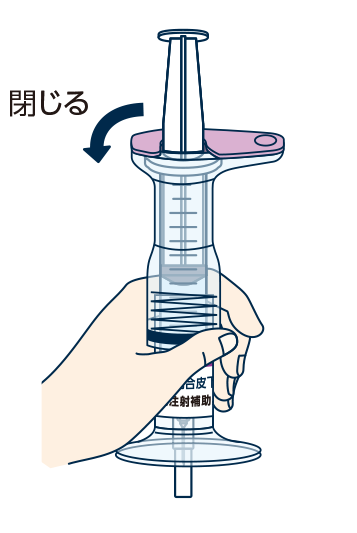 ②アジャスター取りつけ後、「自己注射補助具の取りつけ方」の手順に従って、自己注射補助具を注射筒に取りつけ、以降の手順に沿って注射を行ってください。