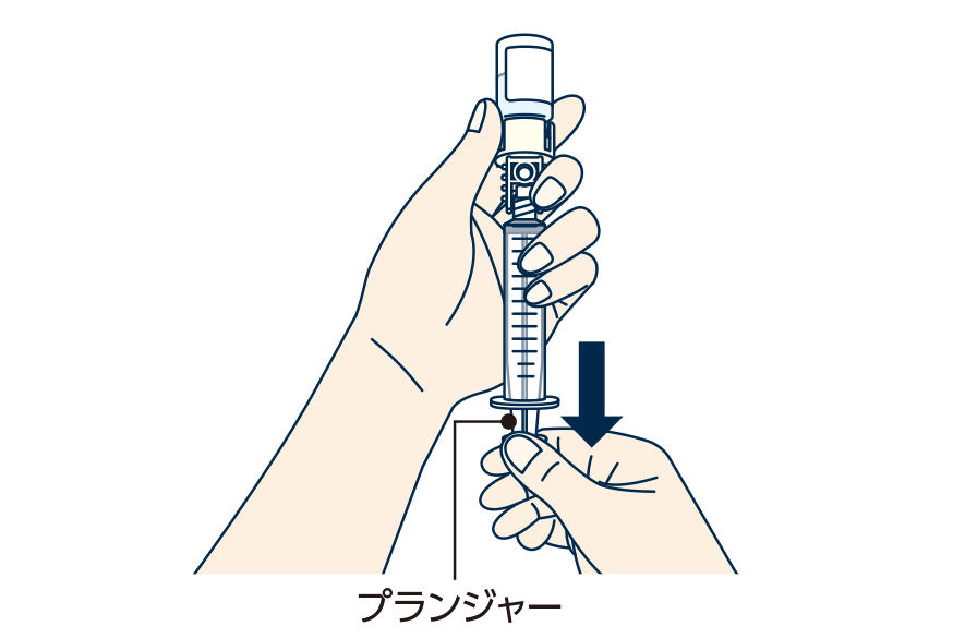 ・気泡や泡立ちを防ぐために、プランジャーはゆっくり引いてください。