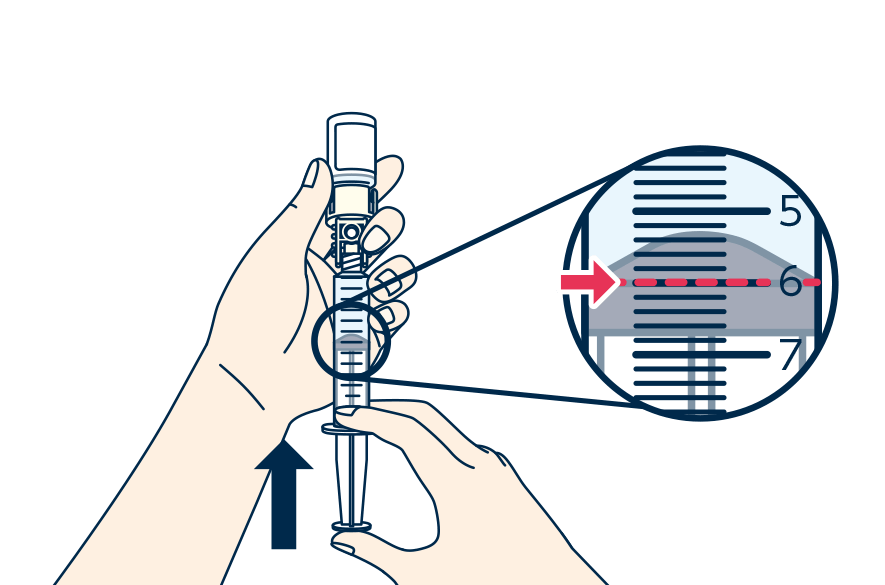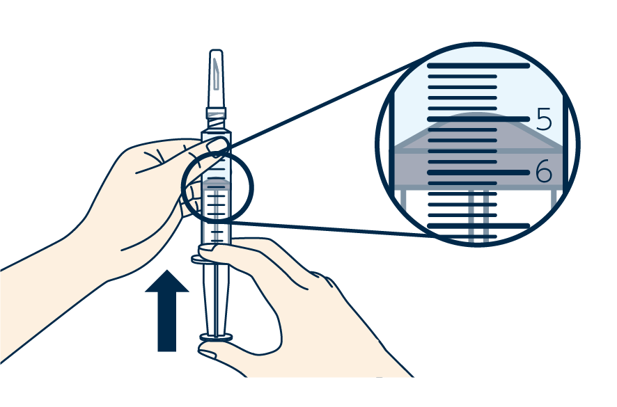 注射筒の目盛りを厳密に5.6mLに一致させる必要はありませんが、5.6mLより少なくならないように注意してください。