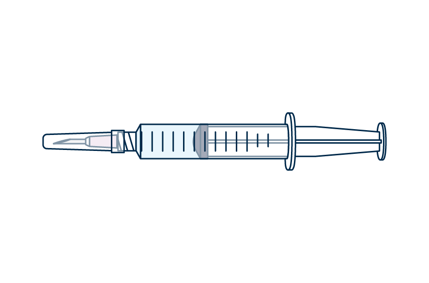 手順どおりにヒフデュラ®を充填し、注射針を取りつけた注射筒を用意します。