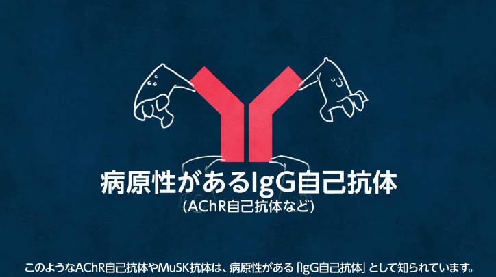 MGの原因となるIgG自己抗体です。神経から筋肉へのメッセージ伝達を妨害します。