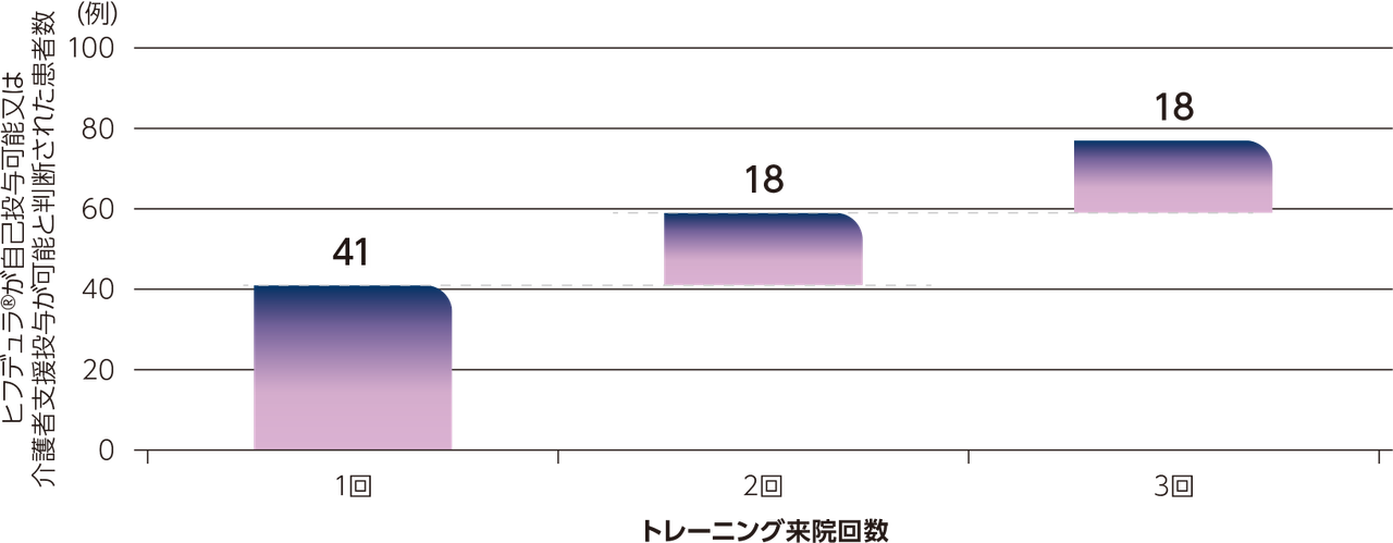 全体集団164例の患者又はその介護者が、医療従事者によるヒフデュラ®投与を開始するためのトレーニングを受け、そのうち145例(88.4%)がヒフデュラ®の自己投与又は介護者支援投与が可能と判断されました。