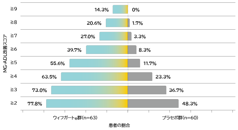 - 全体集団(抗AChR抗体陽性及び陰性患者)の初回サイクルのMG-ADLレスポンダーの割合