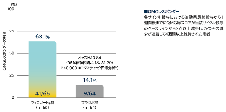 ※2: 各サイクル投与における治験薬最終投与から1週間後までにQMG総スコアが当該サイクル投与のベースラインから3点以上減少し、かつその減少が連続して4週間以上維持された患者