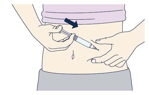 ヒフデュラ®配合皮下注シリンジの自己注射の方法(補助具を使わない場合)についてご紹介します。