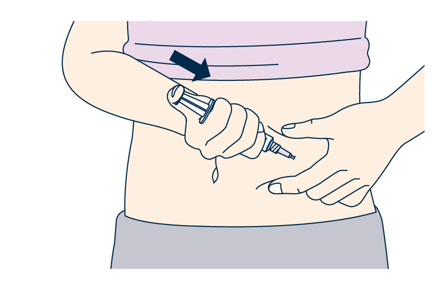 ⑤利き手でプランジャーを一定の力でゆっくり押し、通常、30~90秒かけて薬液を全量注入します。