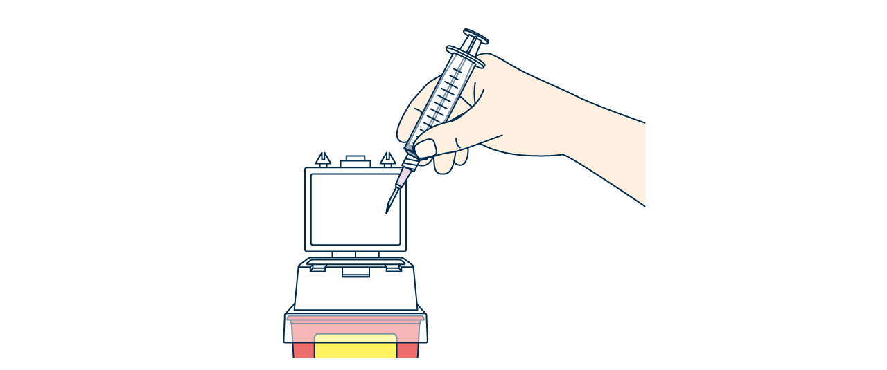 ⑦注射針と注射筒はそのまま廃棄ボックスなどに廃棄します。