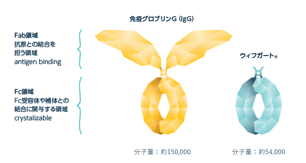 ウィフガートは中性及び酸性の両方の環境下でFcRnへの親和性を高めるように設計されたヒトIgGのFcフラグメント製剤です1,2)。