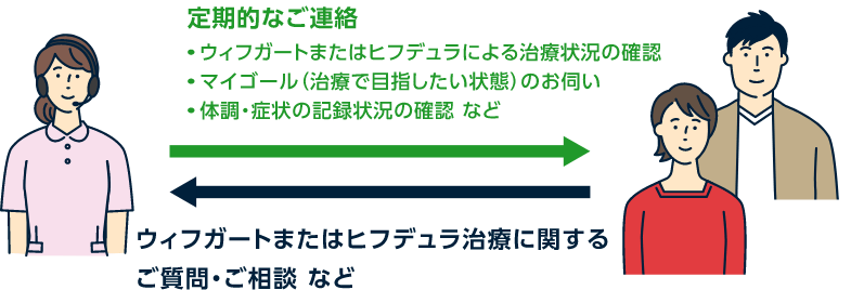 ご希望の患者さんへ、ウィフガートまたはヒフデュラの治療開始期にコールセンターから定期的にご連絡するサービスです※1。