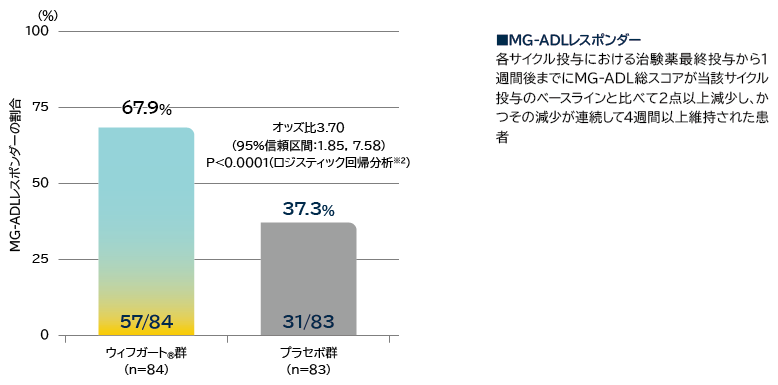 ※4: 各サイクルで治験薬初回投与日からWeek 2(治験薬投与開始2週間後)までにMG-ADL総スコアが当該サイクルベースラインから2点以上減少し、その減少が、連続して4週間以上維持された患者