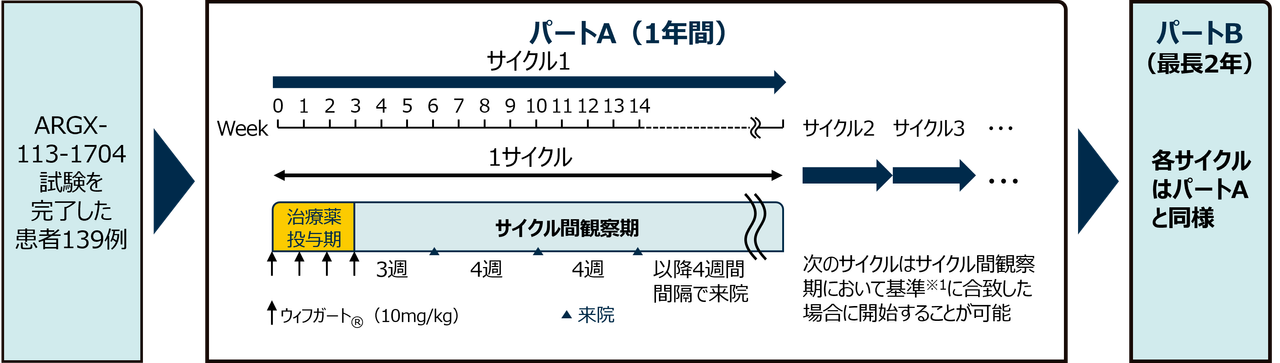 国際共同第Ⅲ相試験(ARGX-113-1704)の継続投与試験、長期、単群、非盲検、多施設共同(欧州、 米国、カナダ、ロシア、日本)
